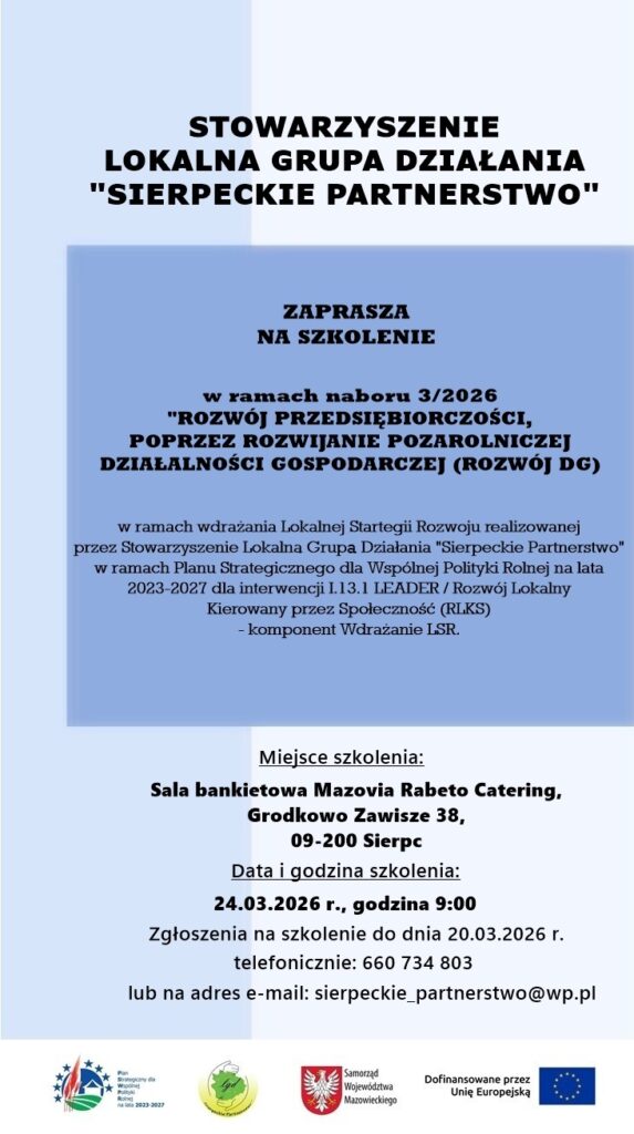Stowarzyszenie Lokalna Grupa Działania „Sierpeckie Partnerstwo” informuje o możliwości składania wniosków o udzielenie wsparcia w ramach...